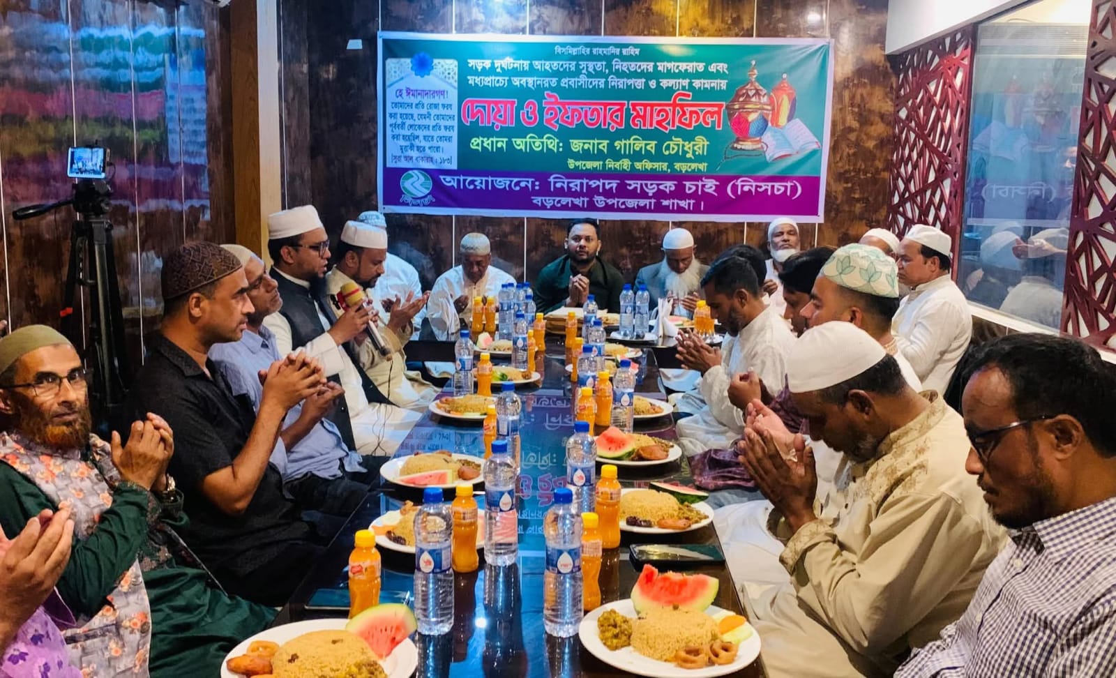 সড়ক দুর্ঘটনায় আহতদের সুস্থতা, নিহতদের মাগফেরাত এবং মধ্যপ্রাচ্যে অবস্থানরত প্রবাসীদের নিরাপত্তা ও কল্যাণ কামনায় দোয়া ও ইফতার মাহফিলের আয়োজন করেছে
